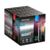 25S 1.2″ BATERIA SILENT NIGHT F2 (QUIET) pomarańczowe, niebieskie gwiazdy z migającymi gwiazdkami, złota palma z zielonymi gwiazdkami, brokatowa korona z purpurą, złota wierzba z niebieskim i złotymi gwiazdkami, kolorowe dalie